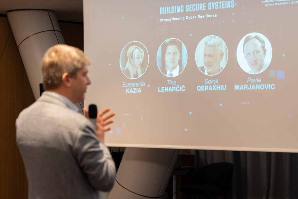 A central theme of the discussion was the critical role of leadership and cross-sector collaboration in strengthening cyber resilience. “The time to build secure cyber systems is now this is no longer an issue that can be deferred,” stated Genti Daci, Chairman of the Digital Business Committee. He emphasized that cyber risk has moved beyond a purely technical dimension to become a strategic business concern, requiring sustained attention from both corporate leaders and institutions.