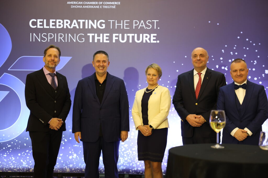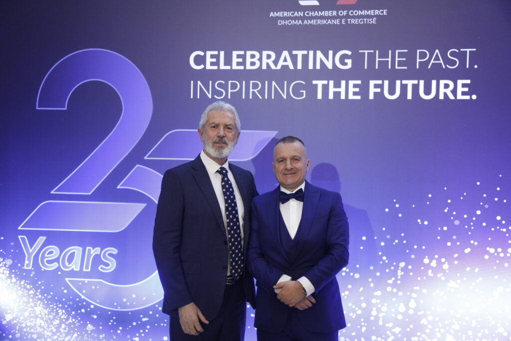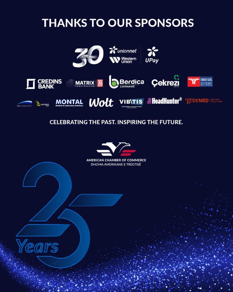 25-vjetori i themelimit të Dhomës Amerikane të Tregtisë ka shënuar një event kulminant me Mbrëmjen Gala që nderoi themeluesit, një rrugëtim të jashtëzakonshëm dhe ndikues të organizatës në zhvillimet ekonomike mes dy vendeve.