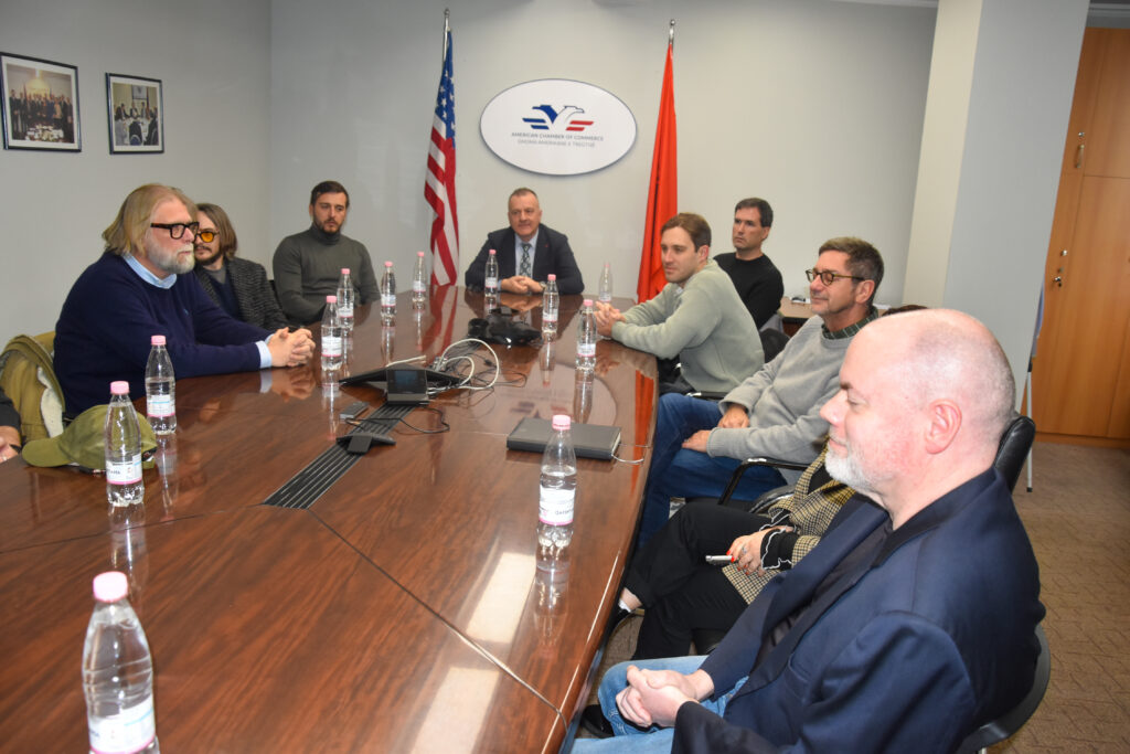 Një nga takimet e agjendës së tyre ishte me Dhomën Amerikane, ku këto brande të njohura hollivudiane Dune, Wednesday, Pacific Rim, Godzilla, Ferrari, Sonic the Hedgehog 3, Pokémon, Maleficent patën mundësi të zhvillonin një diskutim mjaft interesant me drejtuesit e AmCham mbi specifikat gjeografike, demografike dhe oportunitetet e një force të re punëtore që e bëjnë vendin tonë një destinacion konkurrues. Drejtuesit i Catalyst, Z. Philip Gilpin, ka orientuar diskutimin duke sjellë në vëmendje të grupit të industrisë së filmit mundësitë konkrete që ofron vendi, jo thjesht si një destinacion me relieve gjeografike të favorshme, por mbi të gjitha potencialin e një vendi që kombinon politikat incentivuese me një gjeneratë të re të shkolluar dhe të gatshme për t’u profesionalizuar në shërbim të kësaj industrie.